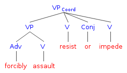 forcibly modifies assault, resist, or impede. All items in the series are attached low. Favored by Series-Qualifier Canon. Consistent with processing tendency toward low attachment: